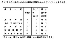本給食ではナグビブリオ汚染の可能性のある魚介類は使用されておらず、またこれらに接触した器具も認められなかった。一方、冷めん業者の施設の拭き取り検査ではナグビブリオは検出されなかった。この事件で一番気にかかるのは調理従事者の検便結果で、