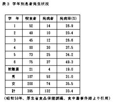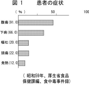 有症者1名から菌が検出されたことである。事件から9日後の検査で、最初非検出の健康者から菌が検出されたが、16日後の検査では同菌は検出されなかったという。この事件の汚染経路は不明ということであったが、調理従事者が保菌者であった可能性は否定しきれないように思われてならない。